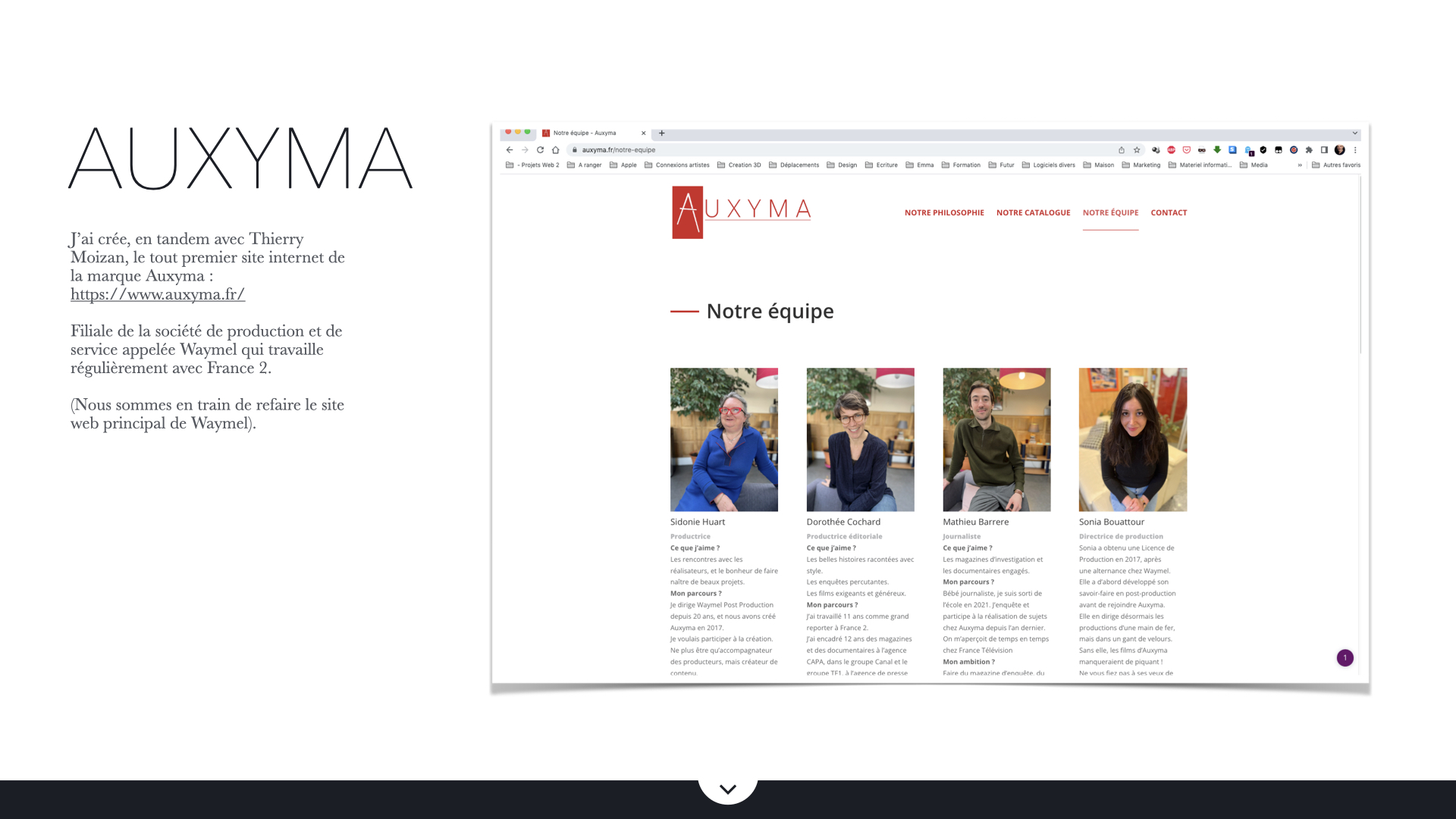 J’ai crée, en tandem avec Thierry Moizan, le tout premier site internet de la marque Auxyma :