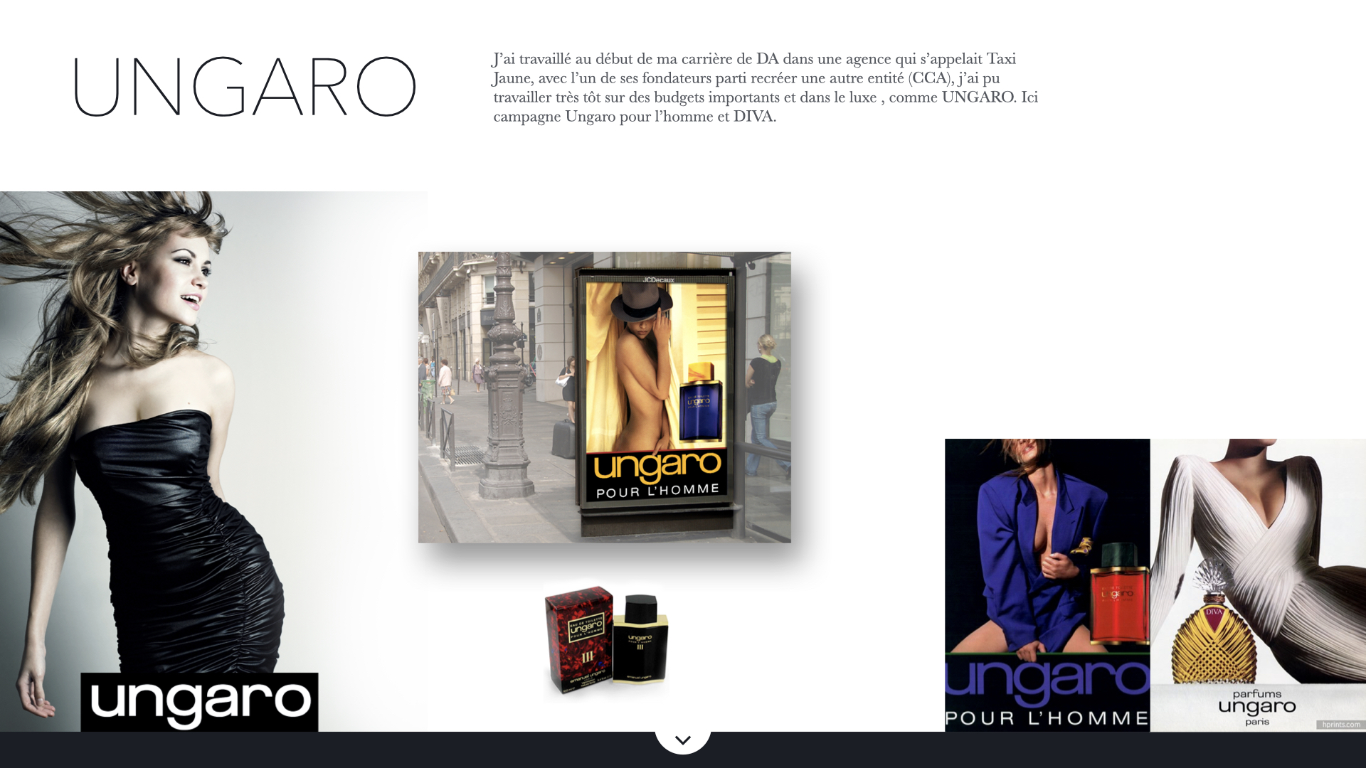 Ici une campagne Ungaro parfum pour l’homme et DIVA pour la femme avec les déclinaisons.