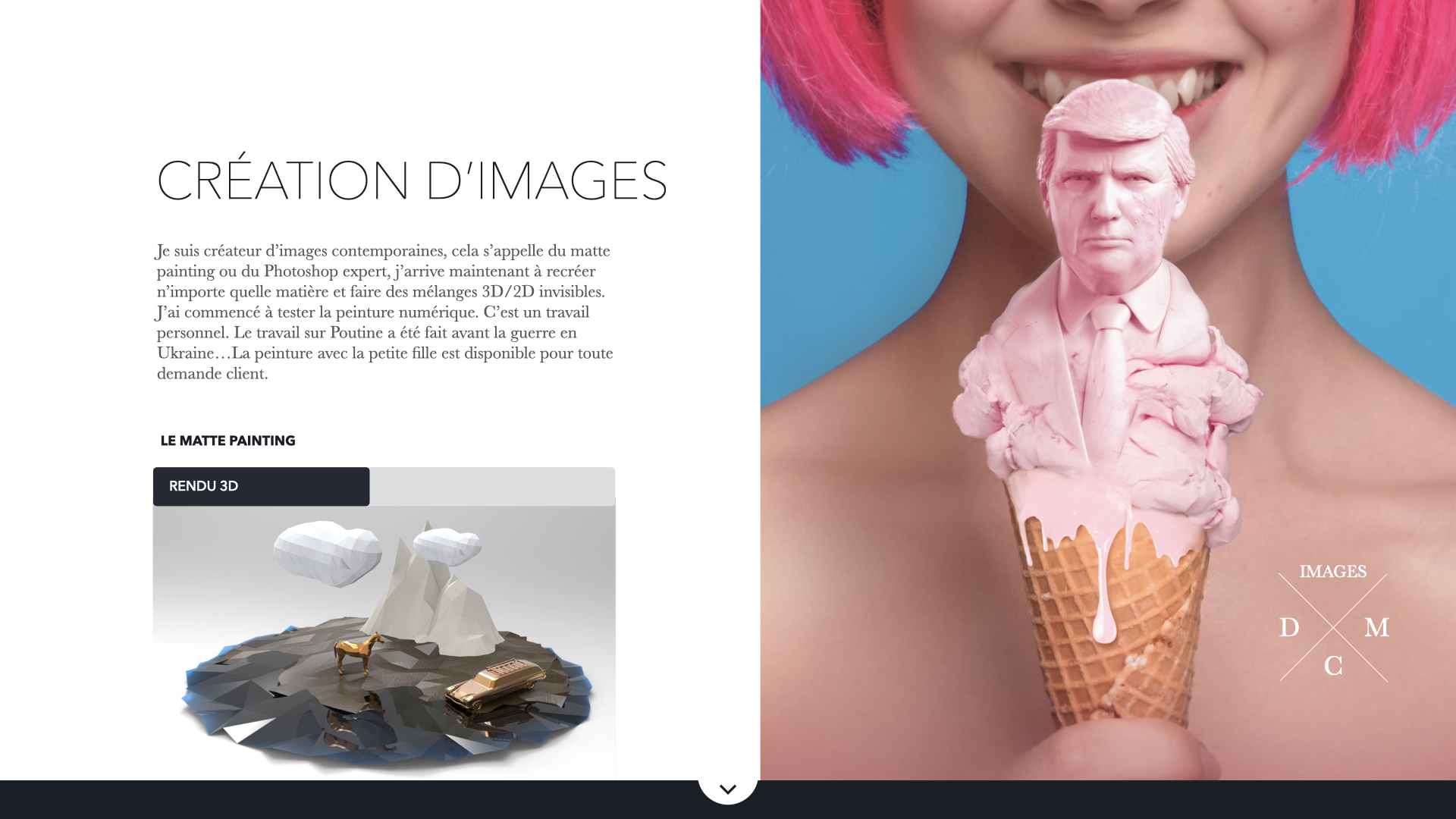 Je suis directeur artistique et designer 2D/3D, créateur d’images, créatif 360,