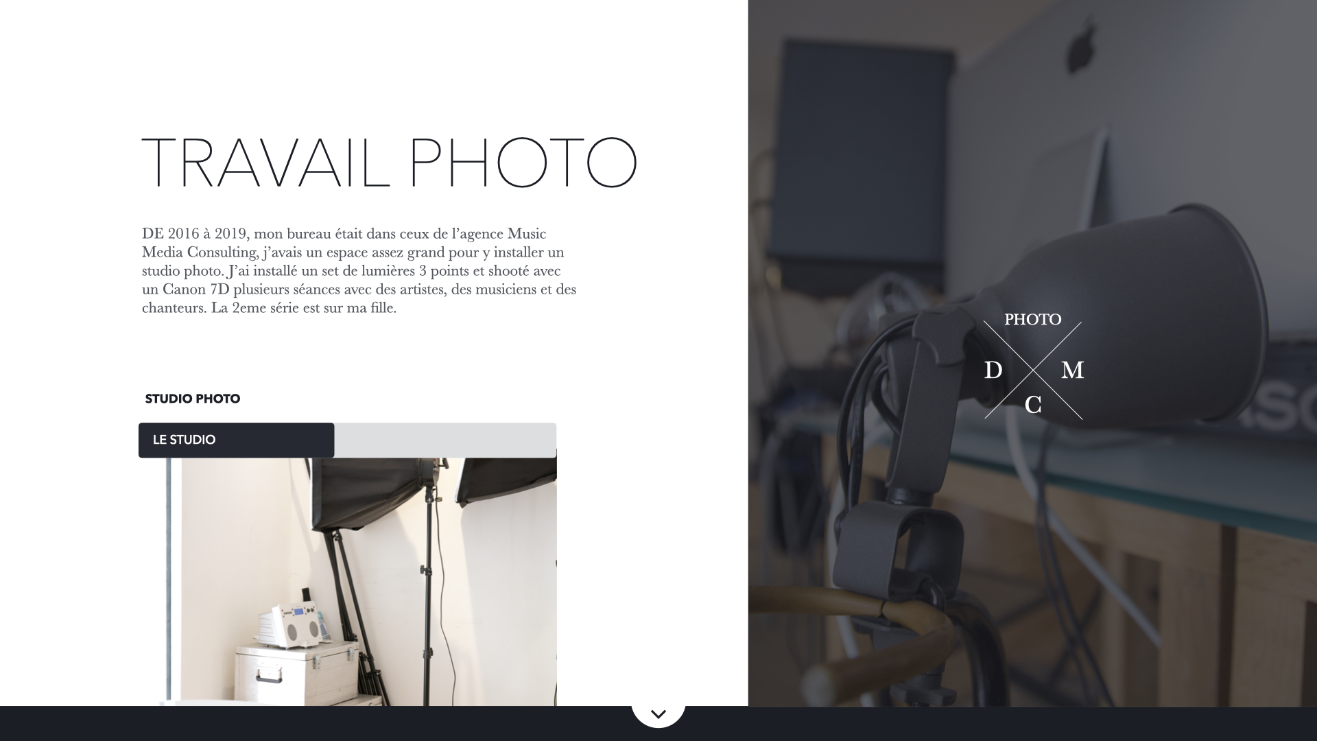 De 2016 à 2019, mon bureau était dans ceux de l’agence Music Media Consulting, j’avais un espace assez grand pour y installer un studio photo. J’ai installé un set de lumières 3 points et shooté avec un Canon 7D plusieurs séances avec des artistes, des musiciens et des chanteurs, dont les photos suivantes sont celles du chanteur "Nadjee".