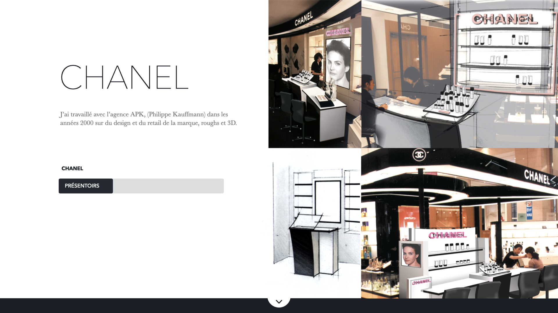 dans les années 2000 sur du design et du retail de la marque, roughs et 3D.